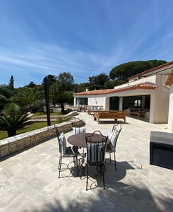 Welcome to this luxurious villa with an electric gated entrance and a driveway that accommodates three cars, plus additional parking around the perimeter. Outside, you’ll find a large swimming pool with a heated jacuzzi, a spacious terrace for dining and relaxation, a pizza oven, and a Weber BBQ. The front garden is grassy, while the back garden has a layered pebble area perfect for breakfast dining and laundry. Inside, the entrance hall leads to an open-plan living area with a lounge, a large dining space, and an American-style kitchen with Miele appliances and an American fridge freezer. There is also a second kitchen/pantry and a separate WC. The lounge opens fully to the terrace, garden, and pool. On the ground floor are Bedrooms 1 and 2, each with en suite showers, TVs, internet, air conditioning, fitted wardrobes, and patio doors to the poolside terrace. The first floor features the master suite with a large en suite bathroom, dressing room, and balcony with golf course and sea views. The lower ground floor includes a bar area, gym, steam room, 10-seater cinema, laundry room, and Bedrooms 4 and 5. Bedroom 4 has a king-size bed and private bathroom, while Bedroom 5 is a self-contained suite with a kitchen, lounge, en suite shower, and a separate double bedroom. The villa is equipped with air conditioning in all bedrooms, internet access, TVs in all rooms, safes in all bedrooms, and a full alarm system. The pool can be heated at an extra cost and has an electric cover and alarm for safety. This villa comfortably sleeps 10 guests, making it ideal for family vacations or luxury getaways.